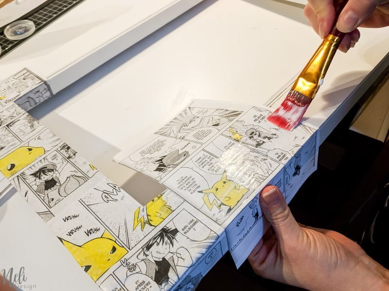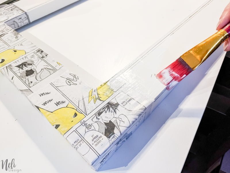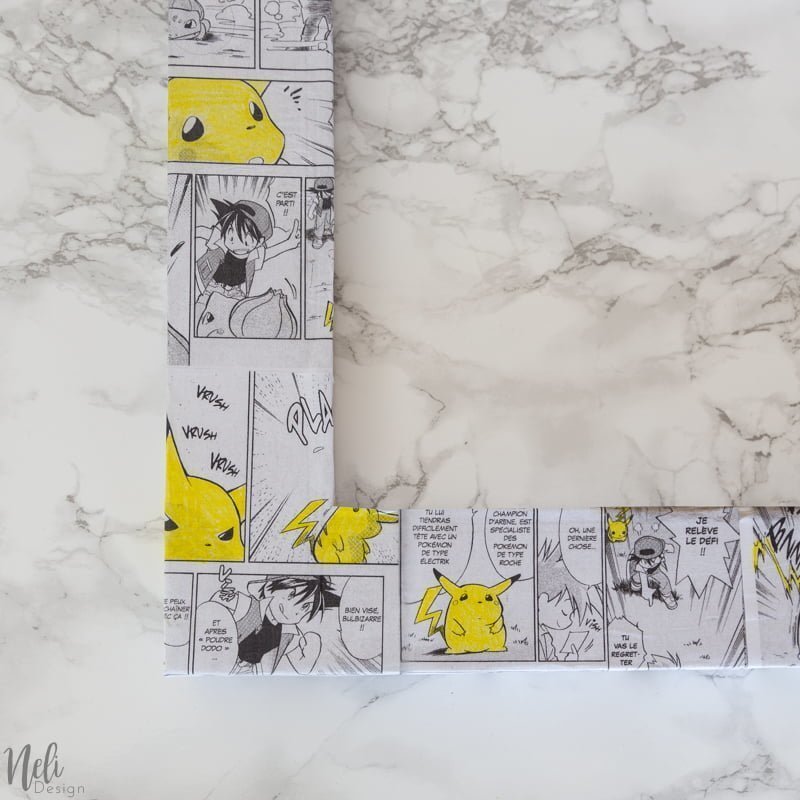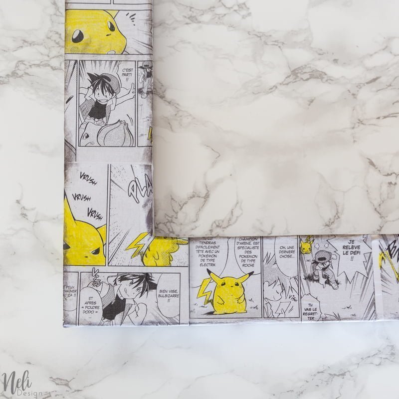 J'ai choisi Pikachu et les Pokemon pour décorer le cadre, mais vous pourriez prendre n'importe quel papier. J'ai photocopié un manga de Pokemon que mon garçon avait et les enfants ont colorié les Pikachu en jaune avec un crayon de couleur en bois pour donner une petite touche de couleur . Si vous n'avez pas de livre chez vous, vous pouvez en louer à la bibliothèque ou faire une recherche internet et en imprimer.
