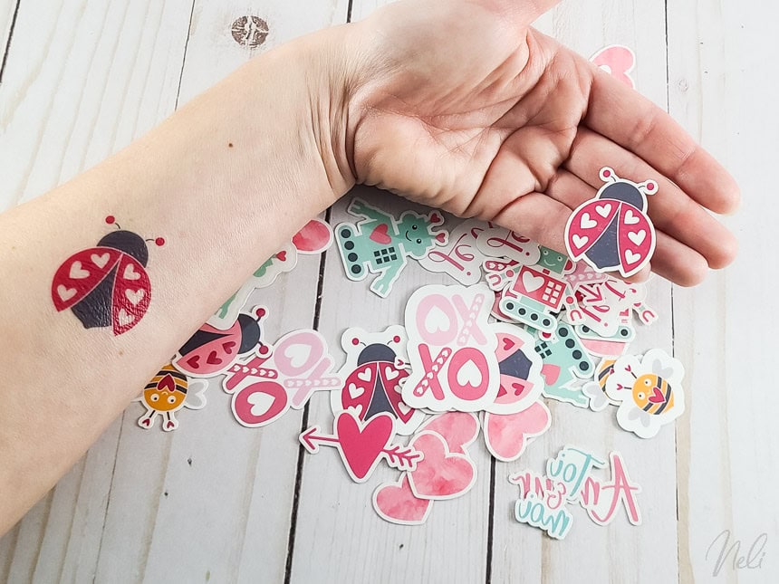 La découpe pleine chair est idéale pour ce type de projet, car elle permet d'avoir des tatouages individuels, prêts à être distribués ou offerts. Si vous hésitez entre découpe pleine chair et mi-chair ou si vous voulez bien comprendre la différence, je vous recommande de lire cet article. En plus, ce dernier vous apprendra à utiliser la fonction "Créez un sticker" qui est maintenant gratuite dans Cricut Design Space.