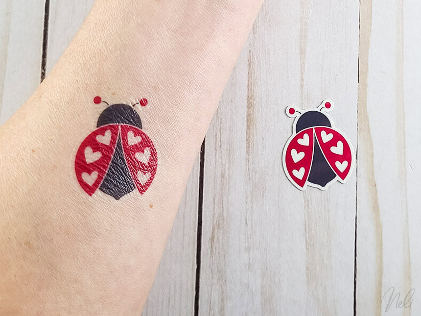Côté durabilité, j'ai été agréablement surprise! Les tatouages tiennent et restent beaux au moins toute une journée, même après une douche-tant qu'on évite de frotter directement dessus. Sur la photo ci-dessous, vous verrez que le premier tatouage (en haut) a tenu moins longtemps, tout simplement parce qu'il était à l'endroit où repose ma montre. Le frottement constant a eu raison de lui! C'est donc un bon point à garder en tête: l'emplacement a un réel impact sur la durée de vie du tatouage.