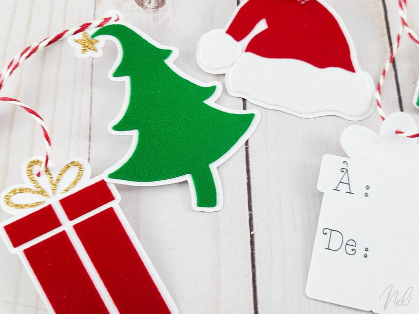 Cette fois-ci, j'ai donc décidé d'utiliser le thermocollant floqué pour créer des étiquettes de Noël originales et en relief. Ce genre de projet amusant permet d'utiliser les retailles (chutes) et de faire un projet original qui ne se trouve pas en magasin.