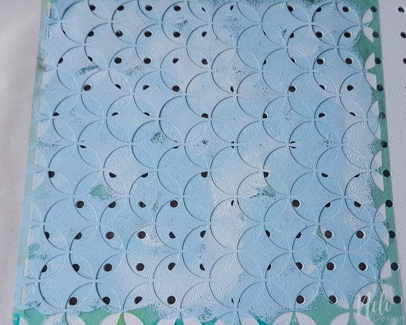 I decided to have a less traditional pegboard by using a Heidi Swapp's stencil (I used the Circle Lattice) that I already had in my craft room stash and blue paint leftover from painting my daughter's room two years ago.